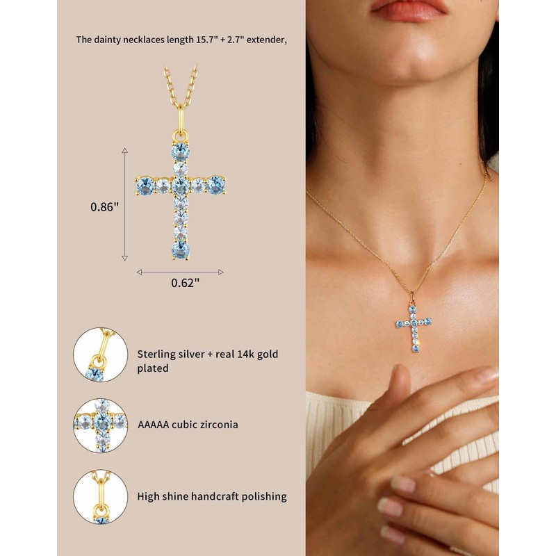 - December birthstone necklace: Classic dainty religious symbol cross necklace for women, keep your belief whenever and wherever. The cross pendant symbolize healing, and the gold cross necklaces for women suggest transition, balance, unity, hope, and life.