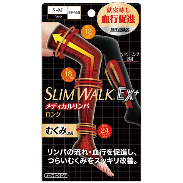 着圧ソックス スリムウォーク メディカル リンパ ソックス ロング つま先なし ブラック S-M 着圧 むくみ