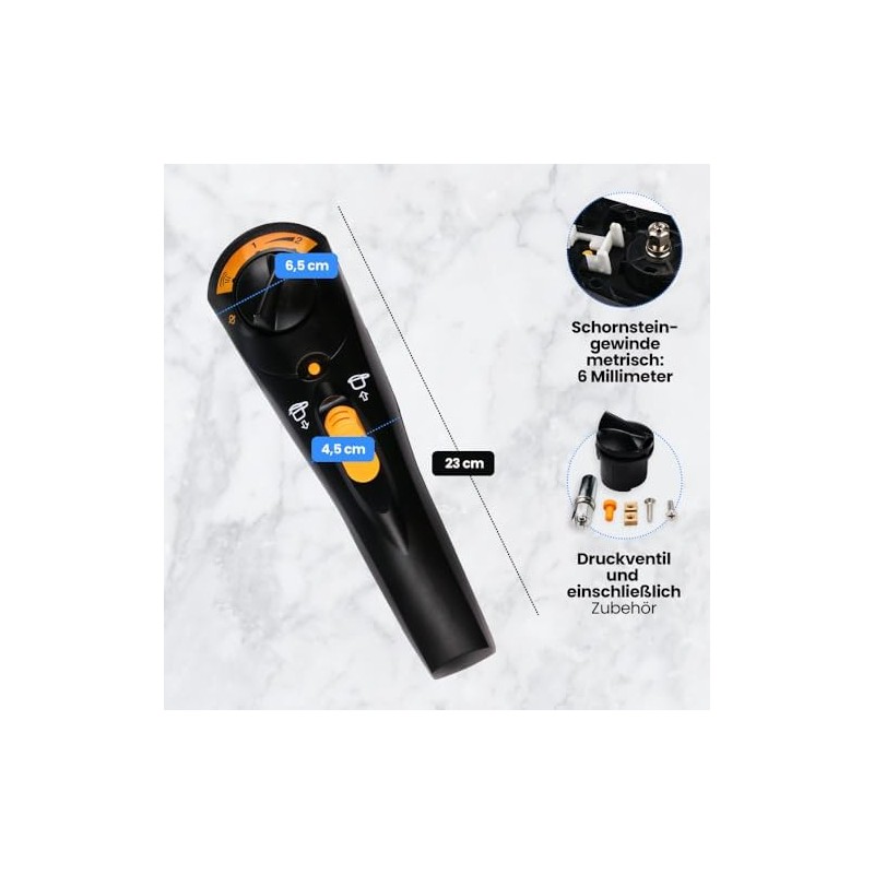 Components: handle, pot, valve, fireplace, bushings + screws and warning detector.