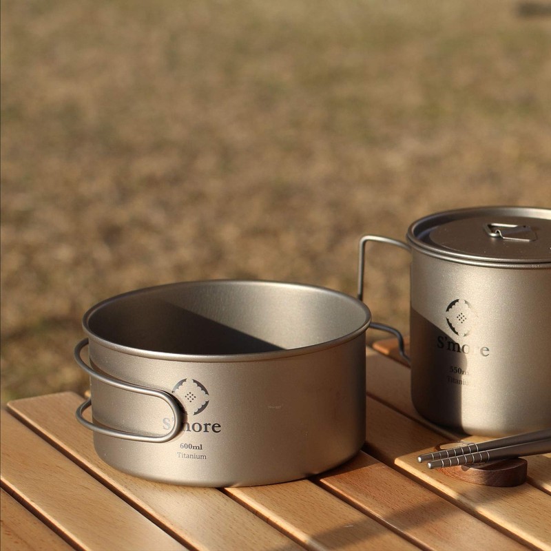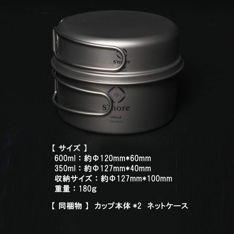 S'more Titanium Cooker Set, Camping Cooker Set, Titanium Cooker, Set of 2, Cookware, Titanium Mug, Single, Outdoor, Camping, Titanium Tableware, Direct Fire, Folding Handle (S (11.8 fl oz (350 ml), 20.3 fl oz (600 ml)