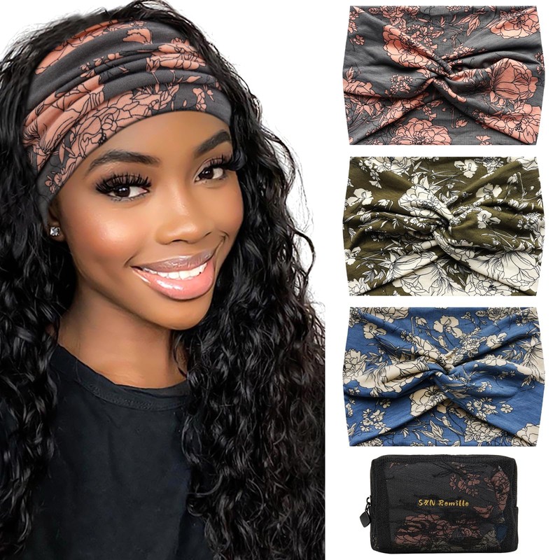 S&N Remille Wide Boho Headbands for Women Extra Large Turban Headband Hairband Hair Twisted Knot Accessories 3 Pack