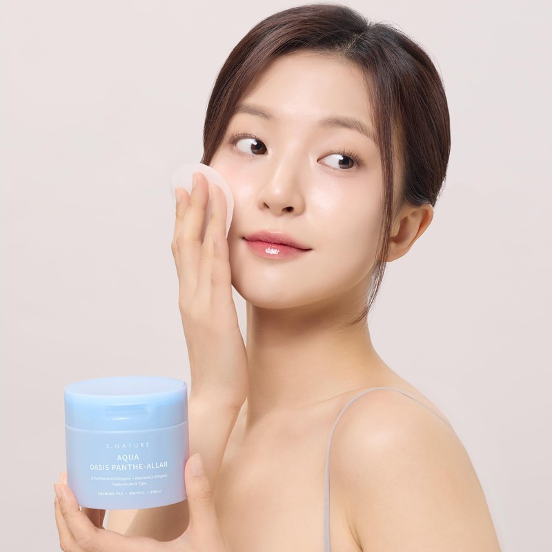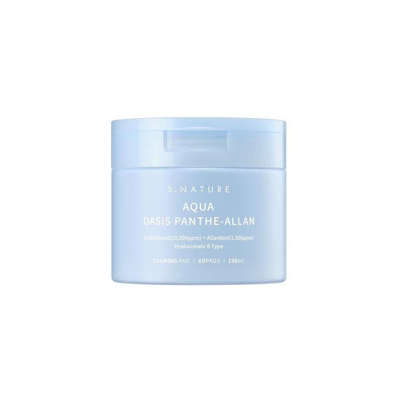 S.NATURE AQUA OASIS PANTHE-ALLAN CALMING PAD 60 Pads, 190ml | Exfoliating, Pore Care, Cooling, Soothing, Hydrating | 6.42Fl Oz