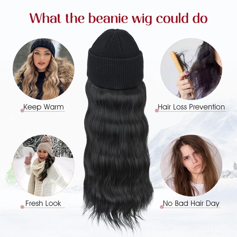 - Instant Style Transformation: With our beanie wig hair extensions,you can effortlessly change your hairstyle in seconds.Whether you want to add length and thickness to your natural hair or simply cover up a bad hair day,our beanie with hair is your perfect companion.Blend it seamlessly with your own hair, and no one will know you are wearing extensions.Embrace a new look and boost your confidence with ease