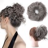 S-noilite Hair Bun Extension Messy Tousled Scrunchie Elastic Rubber Band Wavy Fluffy Scrunchy Wrap On Updo Chignon Donut Instant Ponytail Hairpiece Synthetic For Women Girls (Grey)
