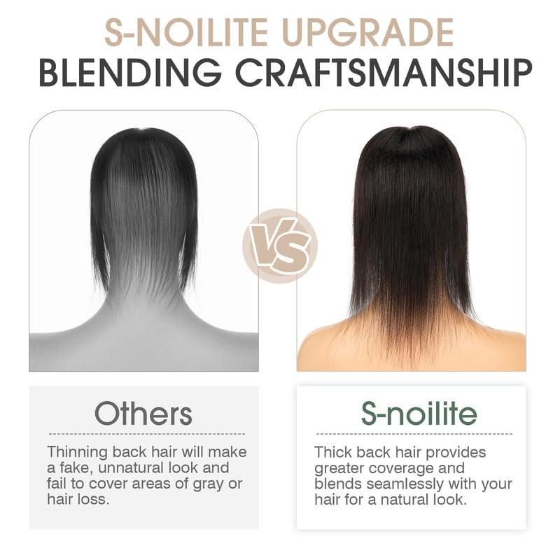 - 【100% Real Human Hair】Discover Unmatched Quality! Our S-noilite hair topper uses 100% real human hair, guaranteeing a seamless blend with your own hair. Experience a natural look without frizz, knots, or tangles. Perfect solution for those seeking a fuller, more vibrant hairstyle. Elevate your confidence with a hairpiece that feels and looks just like your own hair.