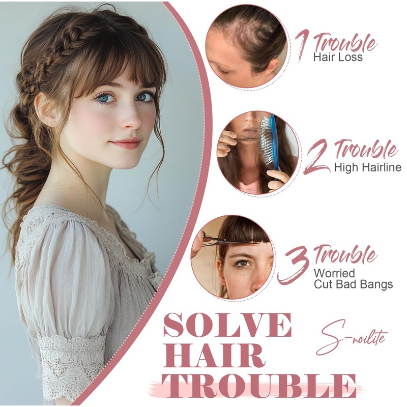 - Material: Fake bangs are made of matte high-temperature silk, which is non-reflective and soft, comparable to real hair; it is designed with an integrated headband and bangs, which can invisiblely modify the hairline.