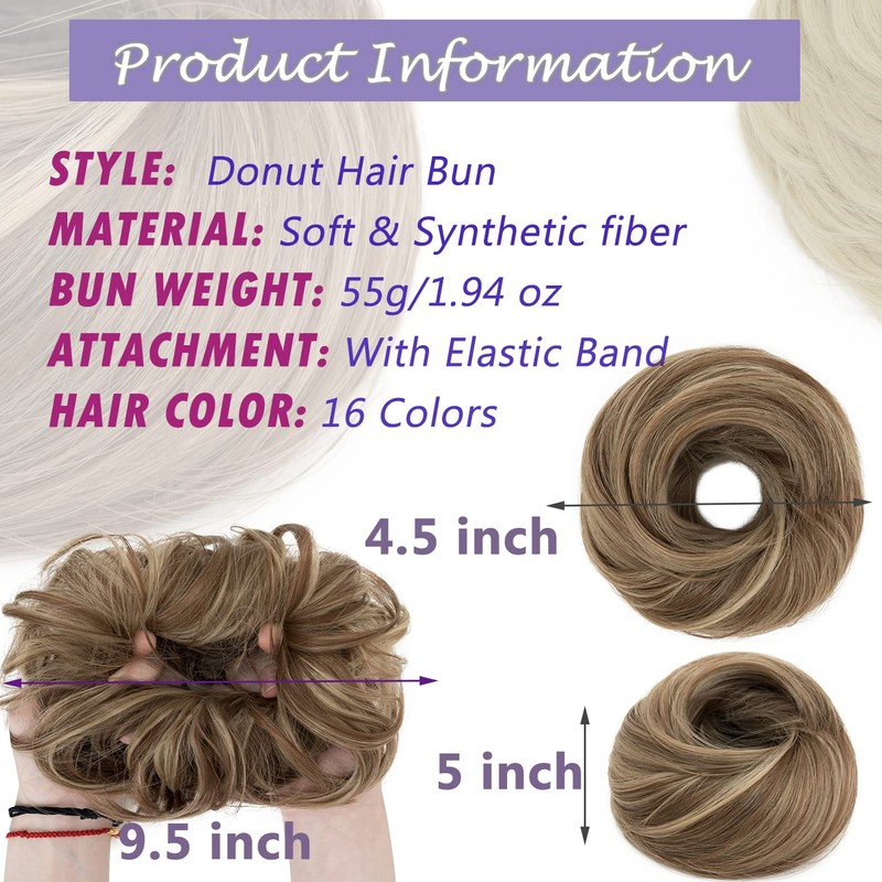 - [High Quality Material] - S-noilite New Donut Bun is made of high quality synthetic fiber material. Hair bun ranges from 4.5 inches to 9.5 inches with stretching.With the elastic hair tie the hair bun is not easy to fall.