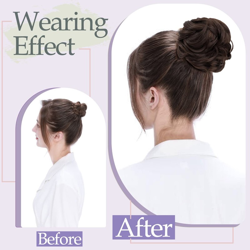 - [More Natural] - Full and shiny, easy to wear,natural and realistic. Blending seamlessly with your own hair for a natural look.Perfect for adding volume and fullness to a bun or a ponytail, elegant and lovely.