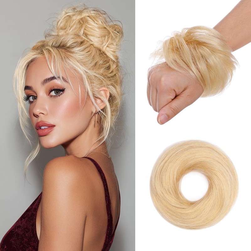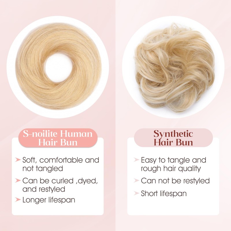 S-noilite Messy Bun Hair Piece Human Hair, Straight Bleach Blonde Human Hair Bun Hairpieces for Women Girls Smoothed Updo Donut Chignon Ponytail Extensions (1 Count)