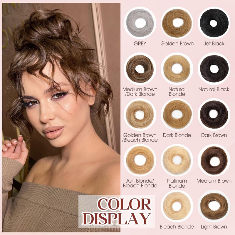 - Warm Tips:We take all product photos ourselves.Please understand that there might be color differences due to lighting and monitor settings.Whether you're using our hair scrunchies for a quick ponytail or to create an elaborate messy bun hair piece or hair bun extension, getting the right color is important for that perfect look of hair buns for women