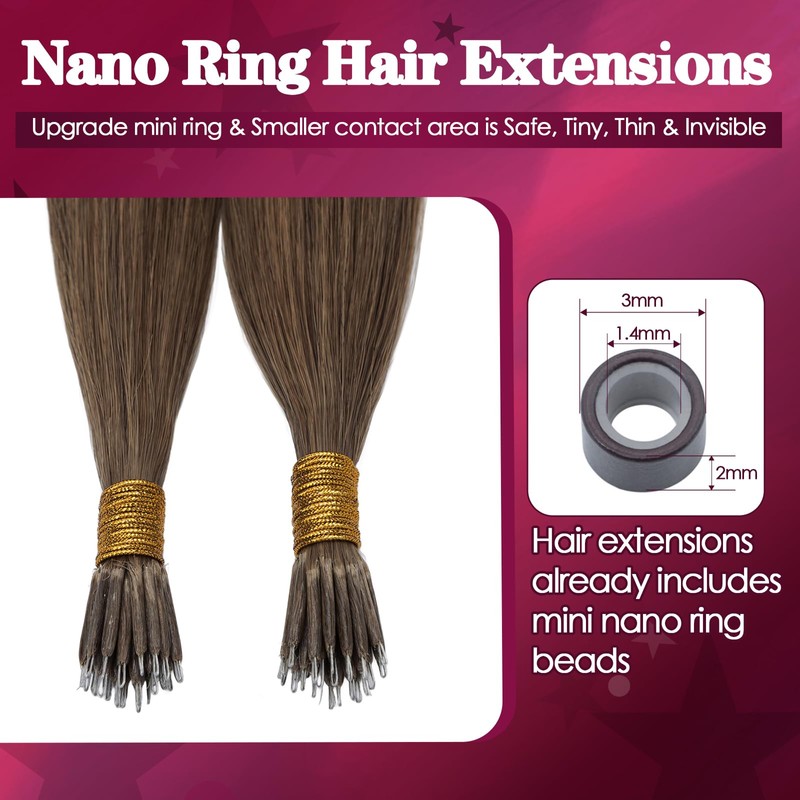 - Improved nano rings: with improved nano rings, which are smaller and invisible. Cold fusion installation: applying hair extensions requires no heat or glue, which can minimize hair damage. Extensions are easy to install and remove.