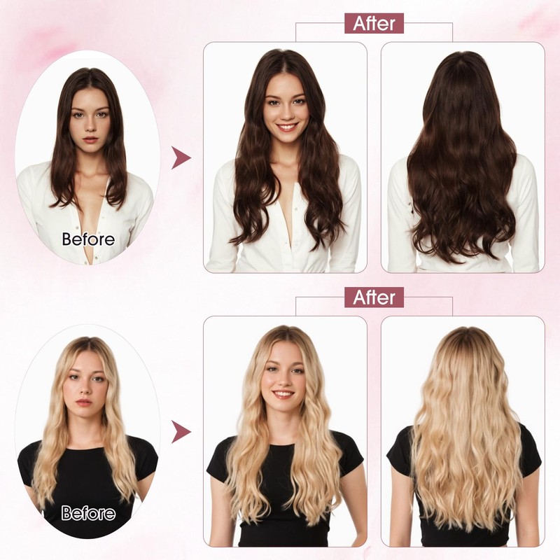 - Easy to Use and Versatile: All the clips are pre-attached to the extensions, and we even provide 2 extra clips, needles, and thread in the pack. Whether you have thin hair and need just one set for a normal fullness or thick hair requiring 2 packs for a fuller and longer style, our extensions can be easily customized to fit your needs