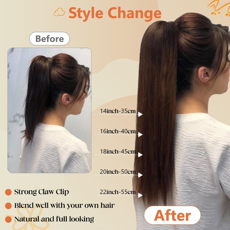 - ✔Ponytail floating function: the ponytail extension can extend the length and add volume to the hair. You can also add extra colour or change your hairstyle quickly without damaging your natural hair.