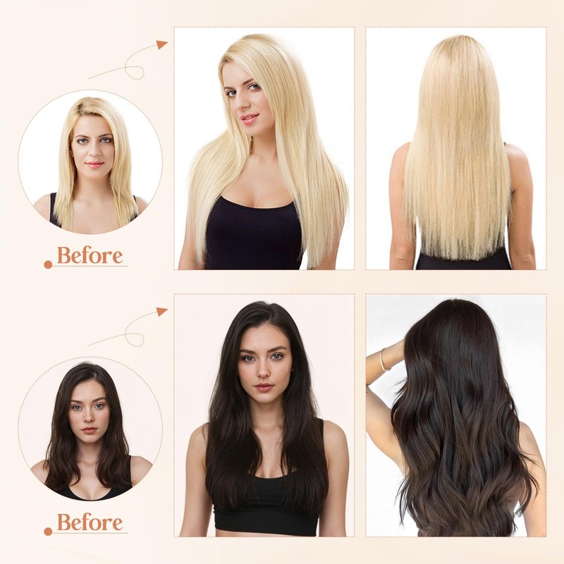 - 100% Human Hair Extensions - 9A Salon Quality:S-noilite real human hair clip in hair extensions can be washed, curled, dyed etc.Our hair extensions are made from human hair,full from top to the end,giving you a flawless look that seamlessly blends with your own hair.