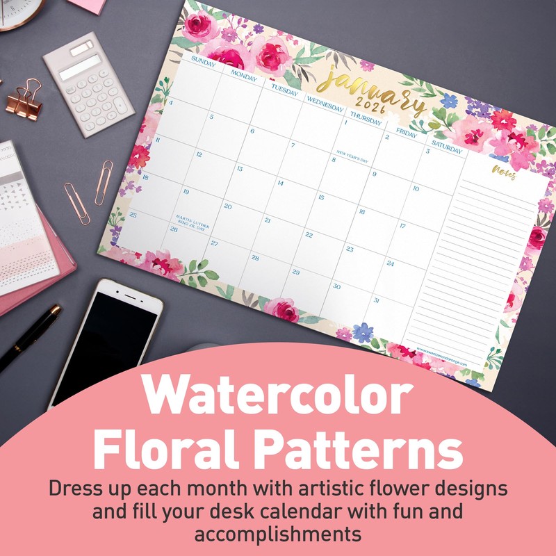 S&O Watercolor Floral Large Desk Calendar from July 2025 to Dec 2026 - Tear-Away Table Calendar 2025-2026 - Desktop Blotter - Academic Desk Planner - Desk Pad Large - 11x17in