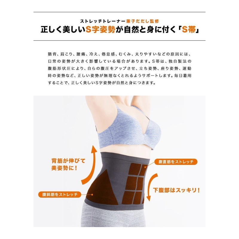 S Obi Black M - L Waist 25.2 - 30.3 inches (64 - 77 cm), Unisex, Stretch Trainer, Kaneko, but Fully Supervised, Abdominal Shape, Corset, Diet Correction Belt