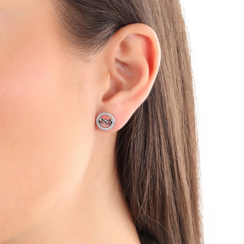 s.Oliver 2032570 Women's Stud Earrings 925 Sterling Silver with Synthetic Zirconia 1 cm Silver Infinity Comes in Jewellery Gift Box, Silver, Cubic Zirconia