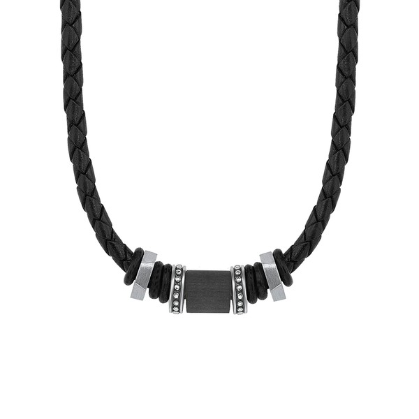 - Fashionable men's necklace with braided leather in black from the brand s.Oliver