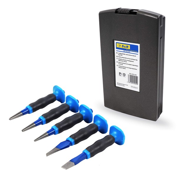 S&R Chisel, Pin Punch and Center Punch Set with Ergo Handle 5-pcs. / Made in Germany/Made of Chrome-Vanadium Steel