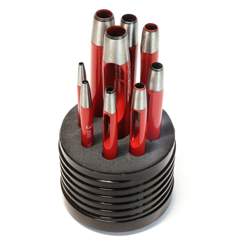 S&R Hole Punch IRON set, round/Made in Germany / 9 pcs.Punching iron Tool 2-10 mm; Specially oiled