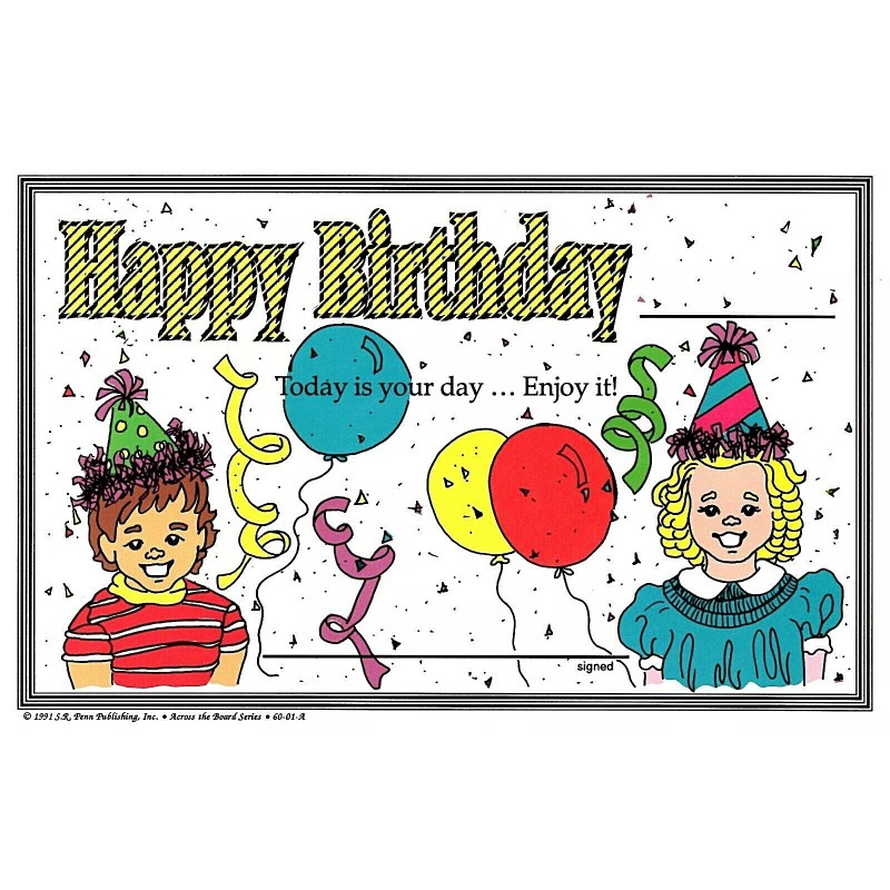 S. R. Penn Publishing, Inc. Happy Birthday Student Awards - 32 per pack - Premium Paper - Full Color