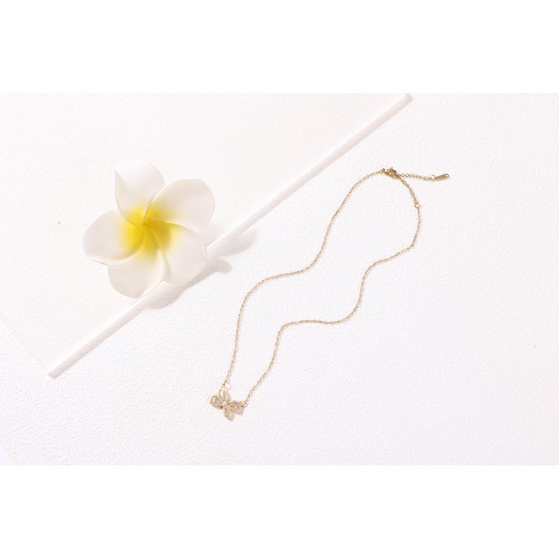 S.ROMZA Women Butterfly Shaped Pendant Necklace, Bow Necklace with Adjustable Chain, Gold Plated Bowknot, Fashion Jewelry Gift Suitable for Women, Stainless Steel, Cubic Zirconia