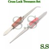 S.S Cross Lock Tweezers Self Closing Fiber Grip 6-1/2" Set of 2 Bent & Straight Tip