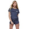 S& SENSIS Elegant Sleepwear Set (Made in EU) Made of Trendy Cotton Shirt and Flirty Shorts or Long Trousers in Trendy Design, Dark blue/white with hearts