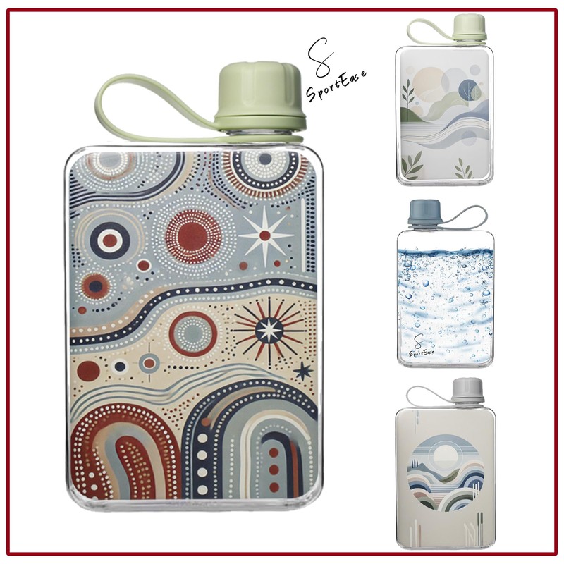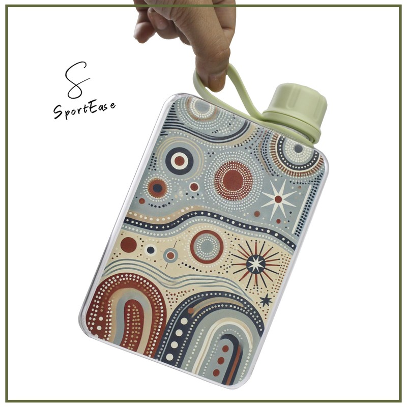 S SportEase Flat Water Bottle 500ml – BPA-Free, Eco-Friendly, Leak-Proof & Slim Design, Portable Reusable Bottle with Indigenous Art, Ideal for Travel, School, Work, and All Ages (Australia Inspired)