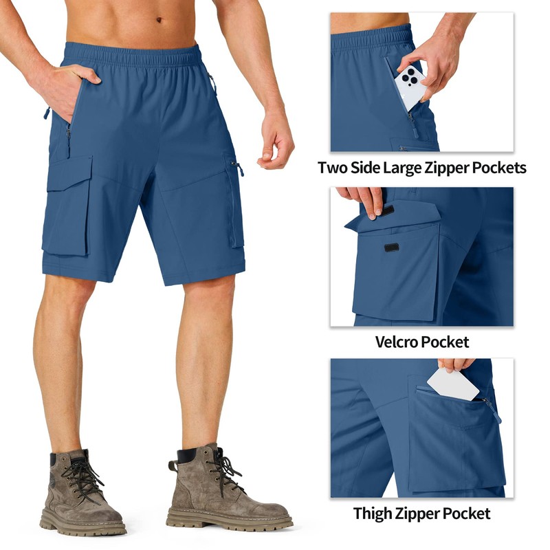 - Lightweight & Quick Dry Fabric: These mens quick dry cargo shorts crafted of breathable, quick dry, 4-way stretch fabric wicks away sweat to keep you dry and comfortable all day.