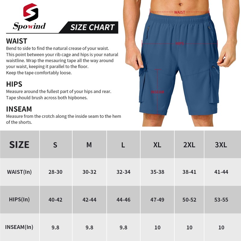 S Spowind Men's Hiking Cargo Shorts Quick Dry Lightweight Summer Travel Shorts with Zipper Pockets for Camping Fishing Golf Blue