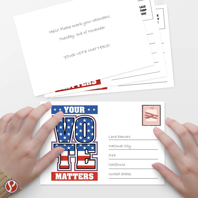 S Superfine Printing Your Vote Matters C Blank Patriotic Voting Post Cards for USA Election Campaign | Mailable, No Envelopes Needed | Flip Side Is Blank| Size 4 x 6 Inches | Bulk Set of 100 Cards Per Pack