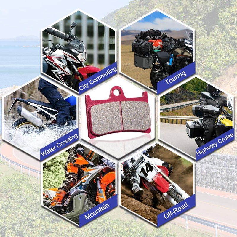 【All-Weather Reliability】: Engineered to deliver consistent braking performance in all conditions—rain, heat, or cold—our brake pads are outstanding for highways, wet roads, rugged trails, city commutes, long-distance touring, urban riding, and high-speed performance.