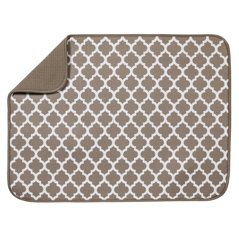 S&T INC. Dish Drying Mats, Polyester, Taupe Trellis, 18" x 24"