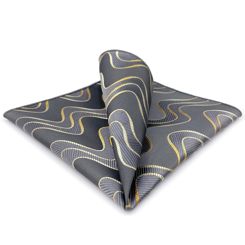 [S&W SHLAX&WING] Men's Pocket Square Gray Yellow Golden Geometric Wedding, gray