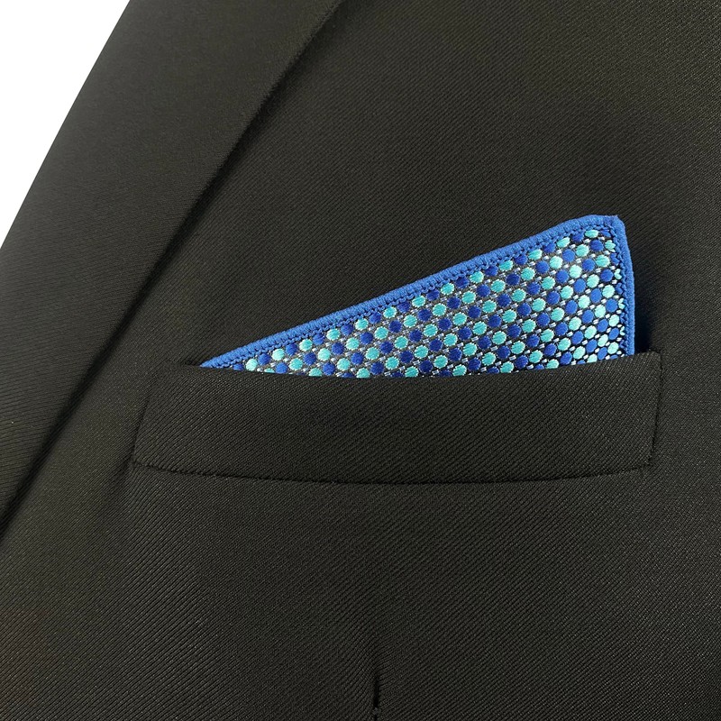 S&W SHLAX&WING Mens Patterned Pocket Squares Business Wedding Blue Green Brown Geometric Suit Jacket, blue