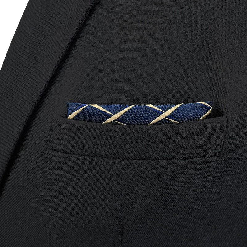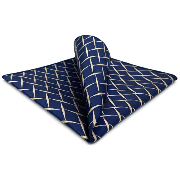 S&W SHLAX&WING Navy Blue Yellow Mens Pocket Square Patterned Geometric Handkerchief Woven Large