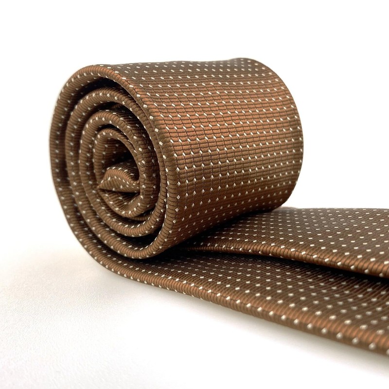 S&W SHLAX&WING Ties for Men Brown Copper Formal Neck Tie with White Dots Classic Size Necktie with Pocket Square Set