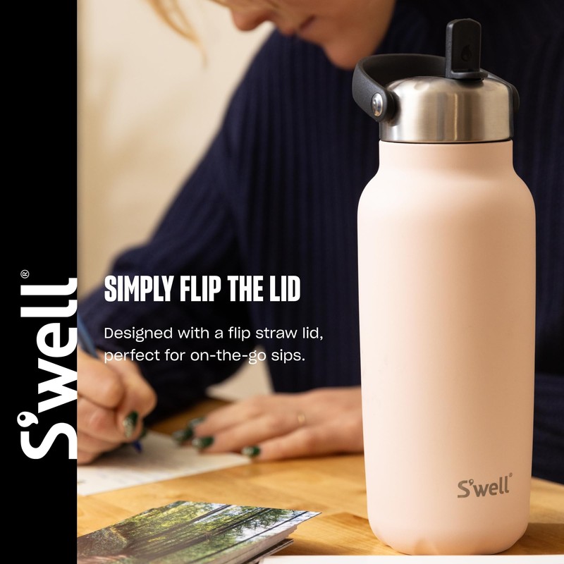 S'well Recycled Stainless Steel Explorer with Flip Straw Lid, 700ml, Pink Himalayan Salt, Triple Layered Vacuum Insulated Containers Keeps Drinks Cold for 36 Hours and Hot for 8, BPA Free