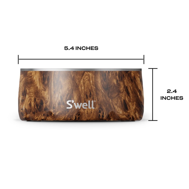 - FOR FOUR LEGGED FRIENDS: S’well 16oz stainless steel Pet Bowl. Perfect for food-loving, water-gulping four-legged friends. Timeless design to keep dogs fed and hydrated in style. Dishwasher safe.