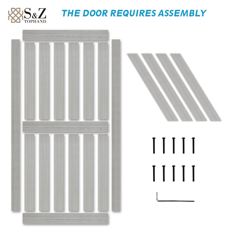 - [No Need for Skilled Installation]: The package comprises barn door slats, a sliding hardware kit, a handle, a floor guide, and installation tools, along with detailed instructions. (The door requires assembly)