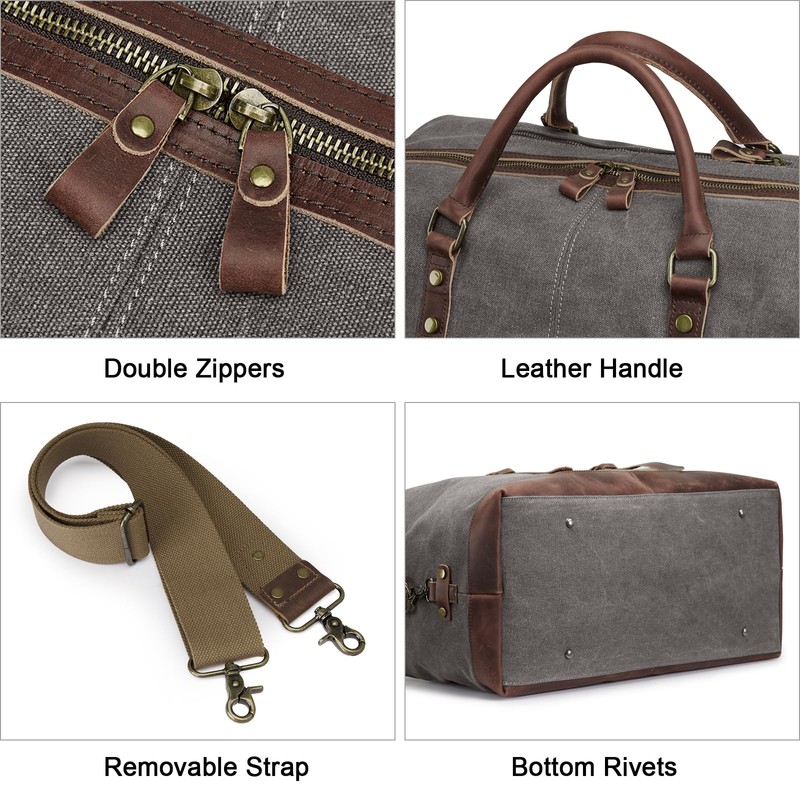 - Material: original crazy horse leather trim stitching handcraft, sturdy and durable high density canvas does not tear, soft cotton lining, rugged bottom rivets, high quality solid zinc alloy hardware, will not easily collect rust