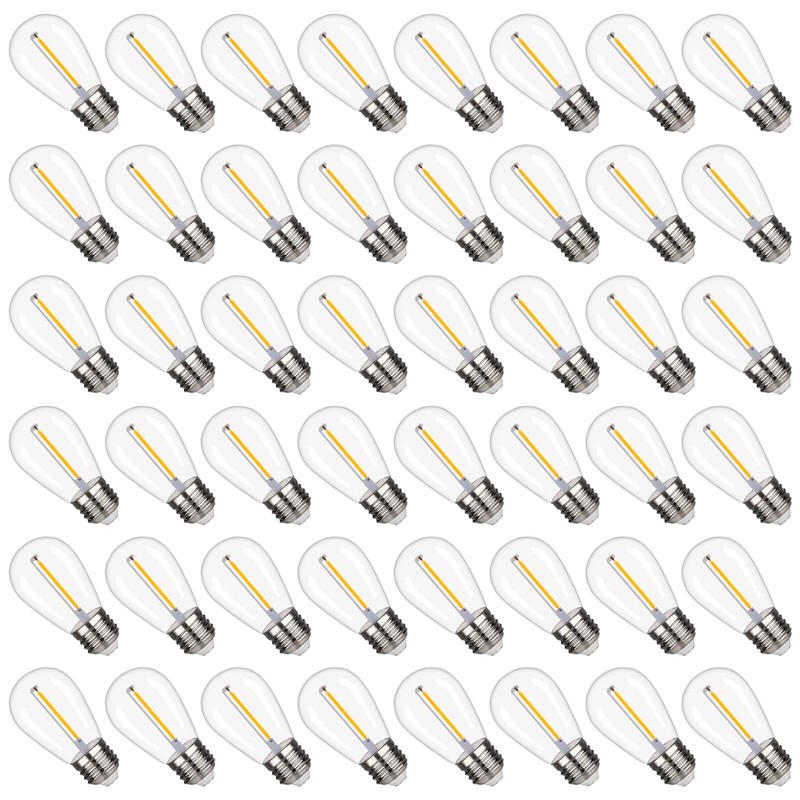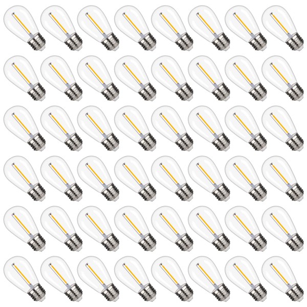 S14 Replacement LED Light Bulbs, Shatterproof & Waterproof 1W S14 LED Bulbs, E26 Base Patio Edison LED Light Bulbs for Outdoor String Lights , Warm White 2200K Plastic 70ML Non-Dimmable 48 Pack