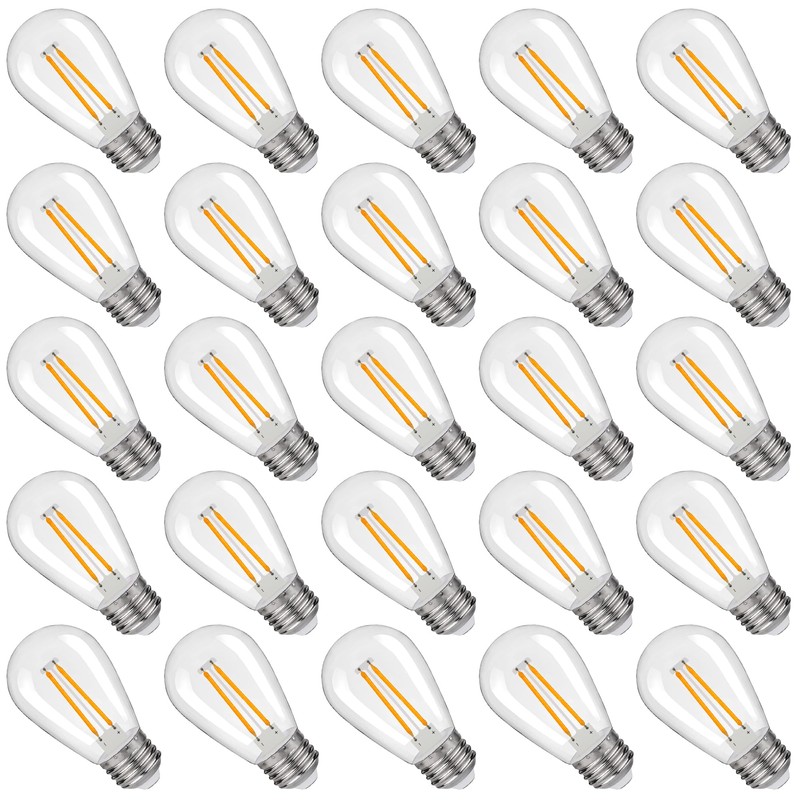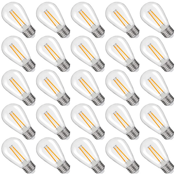 S14 Replacement LED Light Bulbs, Shatterproof & Waterproof 2W S14 LED Bulbs, Outdoor String Lights , E26 Base Patio Edison LED Light Bulbs, Warm White 2200K Plastic 150ML Non-Dimmable 25 Pack