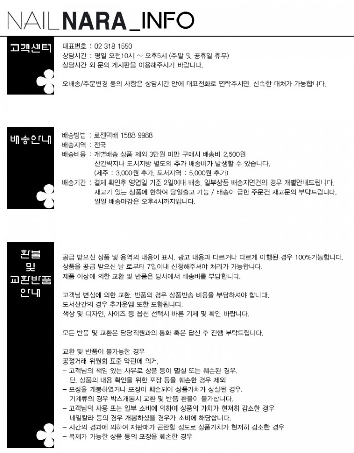 - 소비자상담 관련 전화번호: 네일나라네일나라 _ 02-318-1550