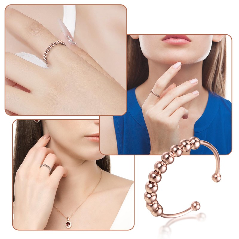 - Open adjustable anxiety ring: the women's spinner ring is 1.2 mm, the beads are 3 mm in diameter. Open design makes the fidget ring size can be gently expanded or reduced to fit your finger. Don't worry about the inappropriate size of the ring, you can buy it with confidence, even if you don't know the size of your finger.