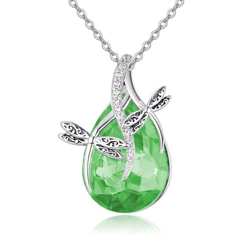 S925 Sterling Silver Necklaces for Women Dainty Teardrop Necklace Dragonfly Pendant Minimalist Birthstone Necklace Valentine's Day Gifts for Girls Wife (08-Aug-Peridot)
