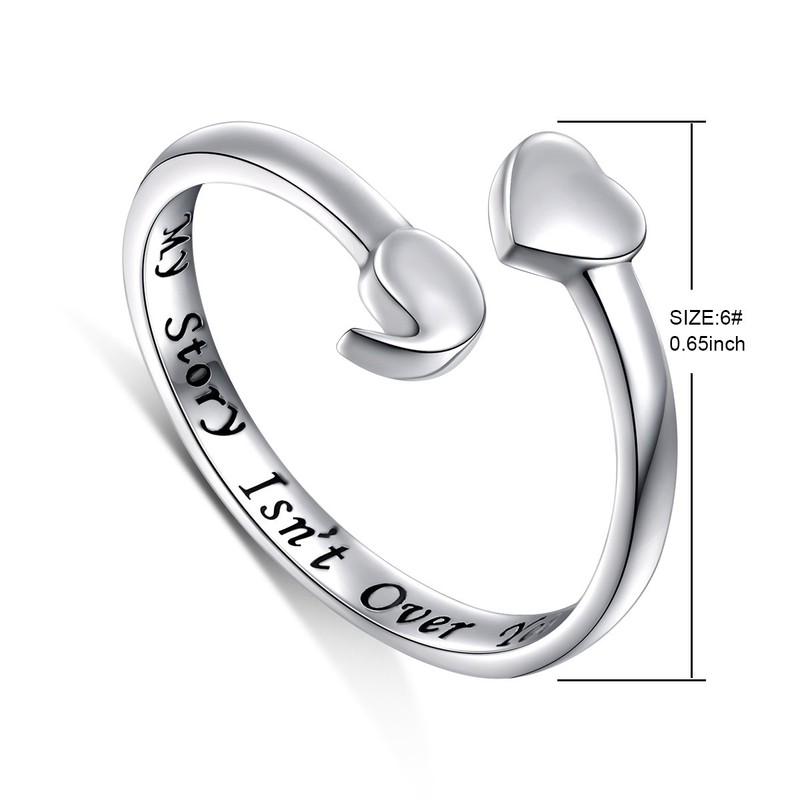 S925 Sterling Silver Semicolon Open Ring Inspirational Awareness Adjustable Ring with My Story Is Not Yet(L-1/2)