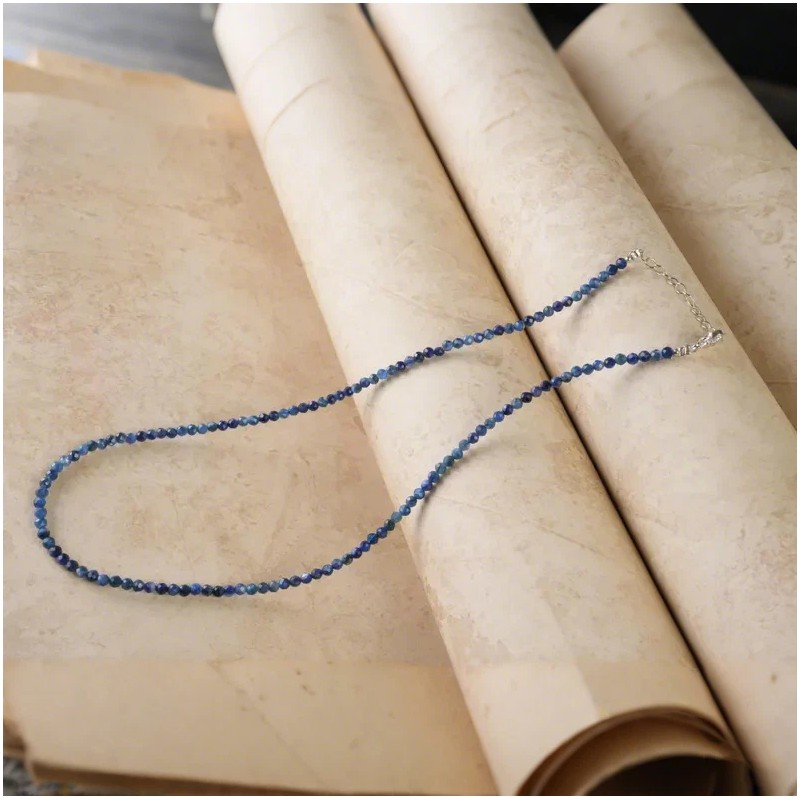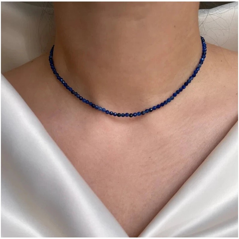 SA Natural Blue Sapphire Choker Round Tiny Beads Healing Energy Dainty Necklace