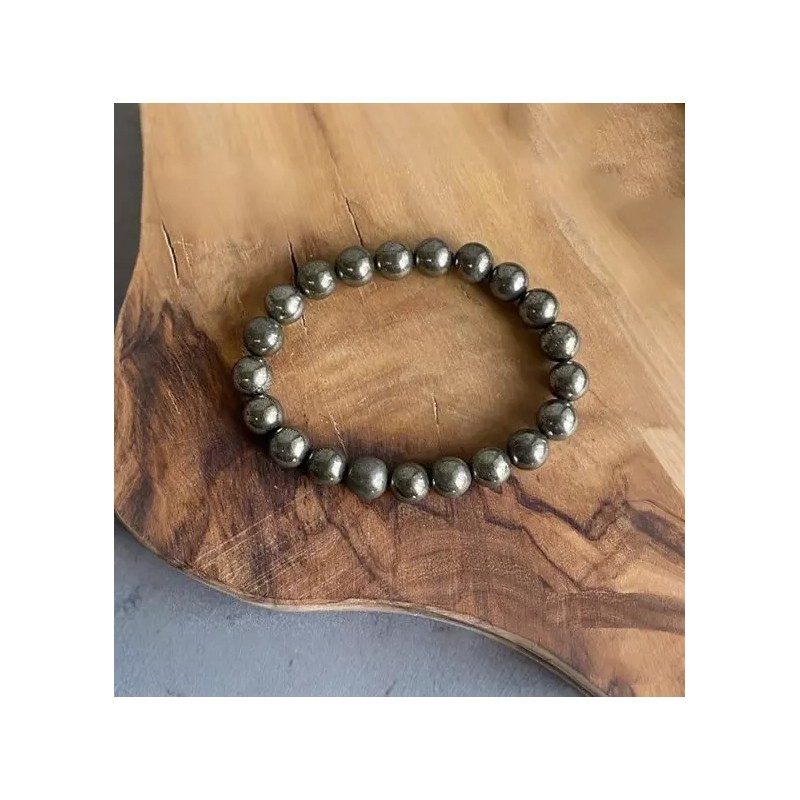 SA Natural Pyrite 8mm Beads Healing Reiki Chakra Astrology Stretchy Bracelet